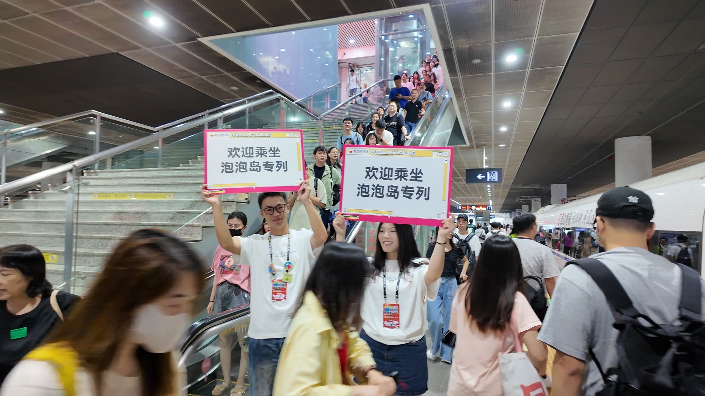 据悉,9月20日至21日,粤港澳大湾区首届泡泡岛音乐与艺术节在广东佛山火热开演。为解决音乐节期间广大乐迷的出行难题,国铁广州局精准对接需求,每日开行2对“泡泡岛音乐与艺术节主题专列”。作为本次音乐与艺术节的主办方,北京创娱无界文化发展有限公司积极联动深圳北站、佛山西站、广九客运段等铁路单位,从车站场景营造、车厢互动体验到夜间出行保障,构建“全链条”服务体系,让乐迷的“音乐之旅”更便捷、更暖心。